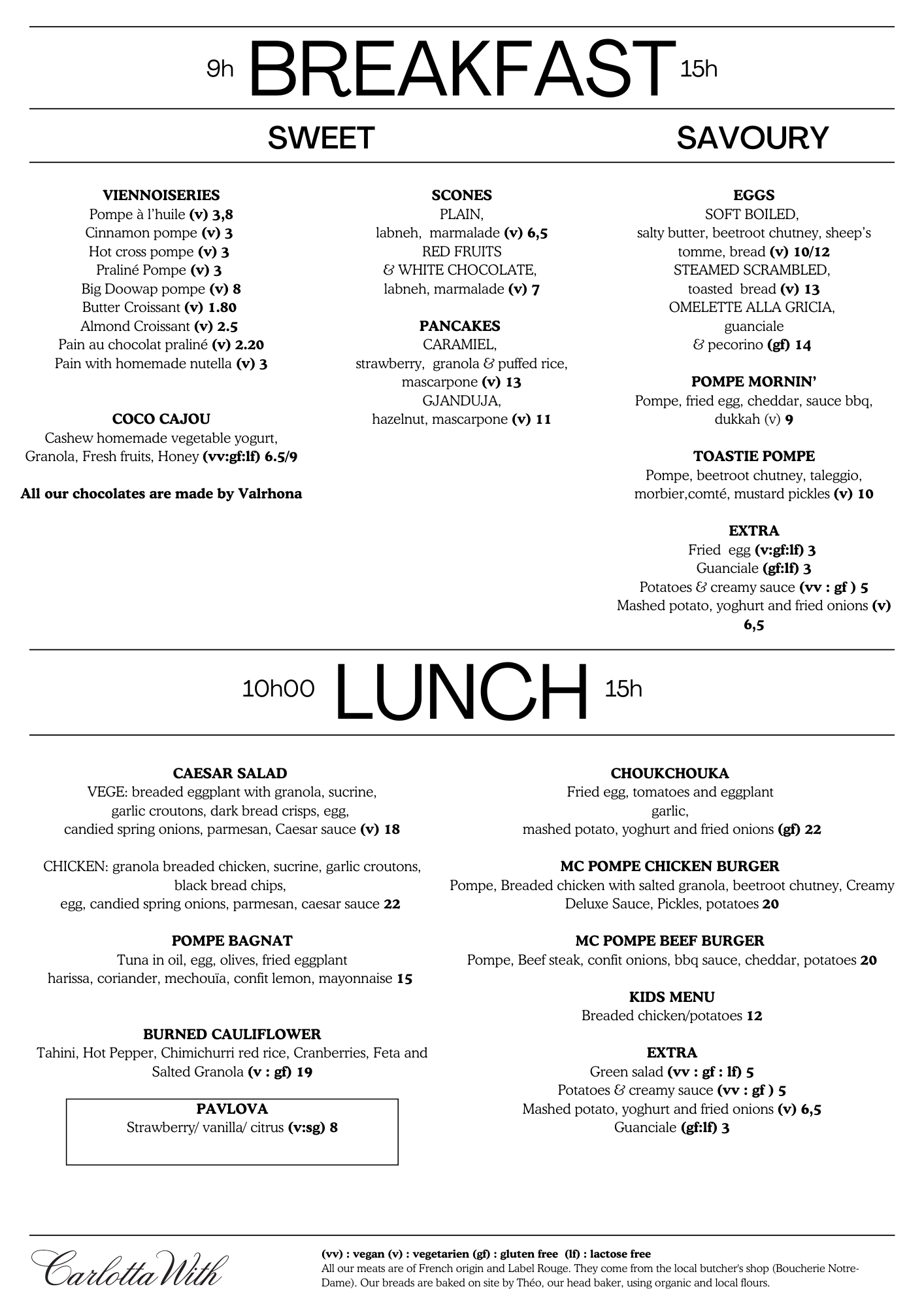 La cuisine est ouverte chaque jour de 9h à 15h et 16h pour le dimanche, mais le Deli reste ouvert en continu, pour vos plaisirs sucrés comme salés !